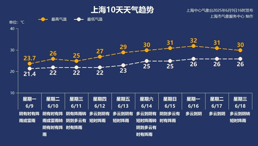 目前,南海有热带扰动存在,可能将于周三(11日)加强为今年第1号台风,也会给上海的天气增加变数,本周后期的降水时间和强度等还会有一些调整。