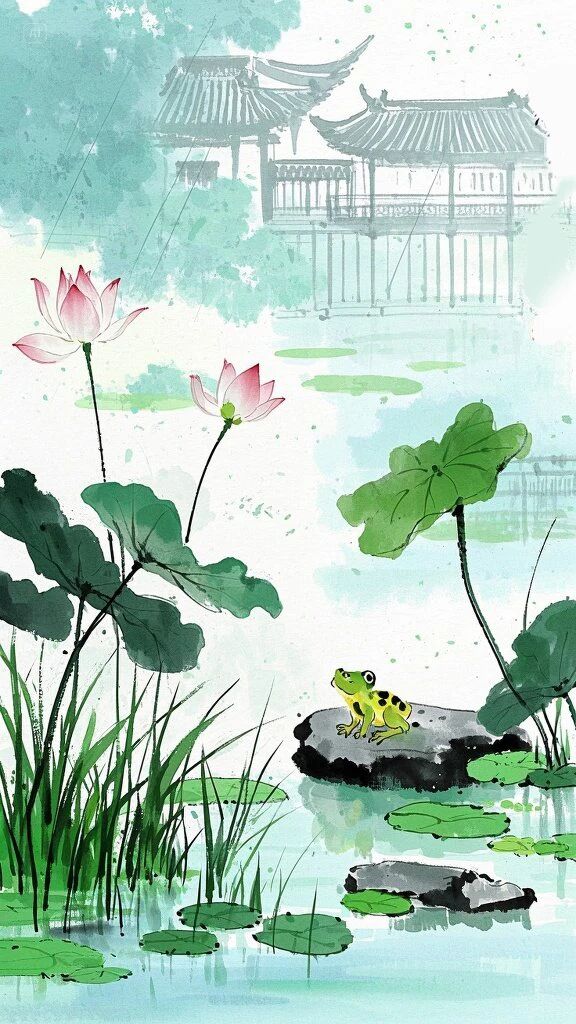 “黄梅时节家家雨,青草池塘处处蛙”,诗的开篇便勾勒出江南梅雨时节独特的景致。绵绵细雨笼罩着每一户人家,那雨仿佛不知疲倦,下得执着而绵长。池塘边,青草郁郁葱葱,蛙声此起彼伏,在静谧的夜里格外清晰。这看似热闹的场景,实则暗藏着一种深邃的寂静,就像一幅浓墨重彩的水墨画,喧闹的蛙鸣与细密的雨声反而衬托出周遭环境的清幽。