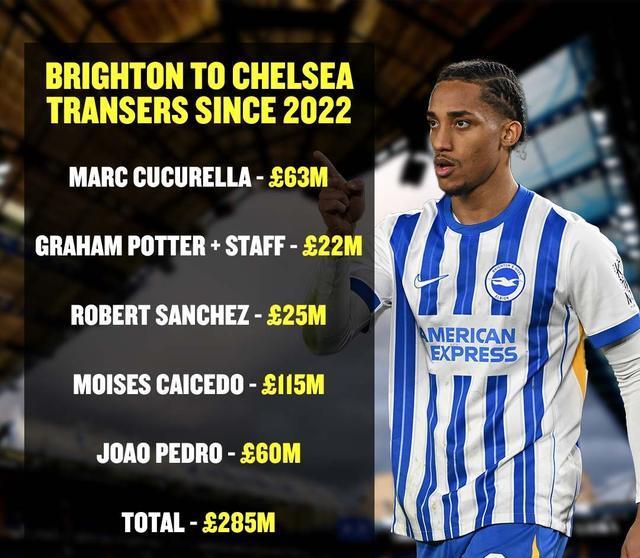 有趣的是这给布莱顿带来了新的巨额收入,知名英媒talkSPORT晒出切尔西近些年在布莱顿身上花费的钱,蓝军在海鸥身上已经砸了将近3个亿的,很多粉丝们戏称布莱顿就是蓝军的人才培养基地。