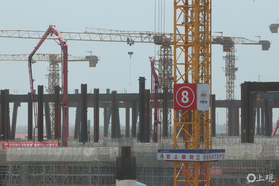 日前,随着上海东站站场区地下工程捷运线北侧B区最后一块B0板浇筑完成,标志着上海东站建设全面进入地上工程主体结构施工阶段。